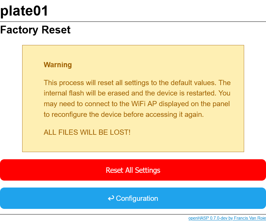 Click 'Reset All Settings' to erase the files on the internal flash, EEPROM and NVS user configurations.