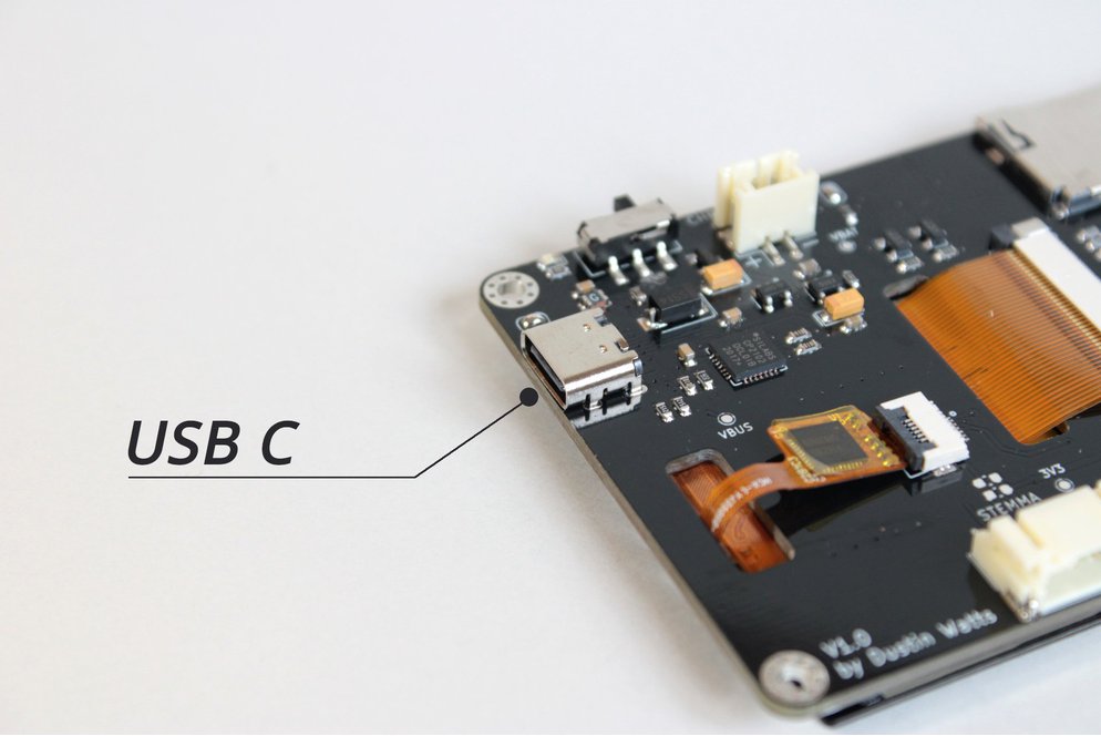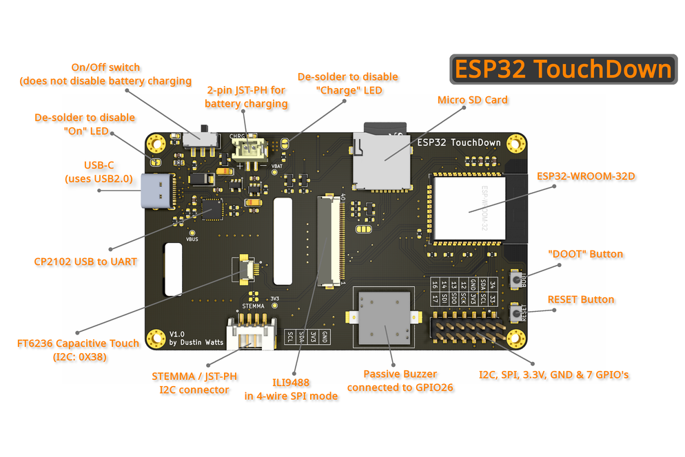 The ESP32 TouchDown can easily be flashed over USB like any ESP32 development board.