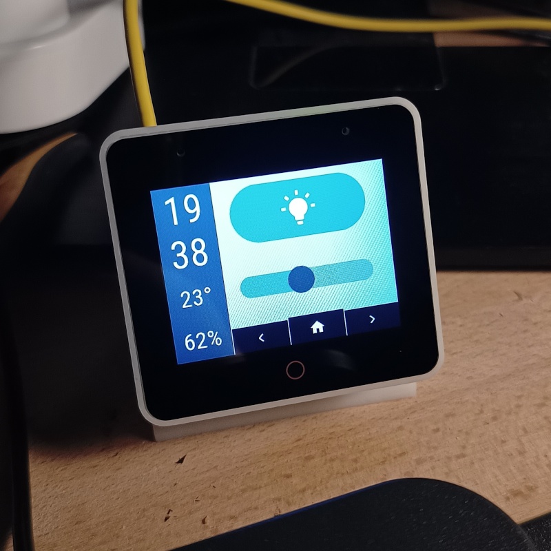 The ESP-BOX is a series of development kits by Espressif. A handful of variations exist, but all feature an ESP32-S3 with PSRAM, a 320x240 2.4" LCD and a capacitive touchscreen controller. They also include two microphones and a speaker, though these are not used by OpenHASP. A number of GPIOs are also available, depending on variation and stand.