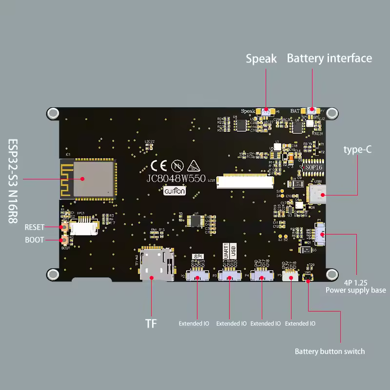 This is "all-in-one" device that have integrated ESP32-S3 chips with 16 MB of flash and 8MB PSram. This display utilizes IPS matrix with capacitive touch screen (no multi-touch - as stated in docs).