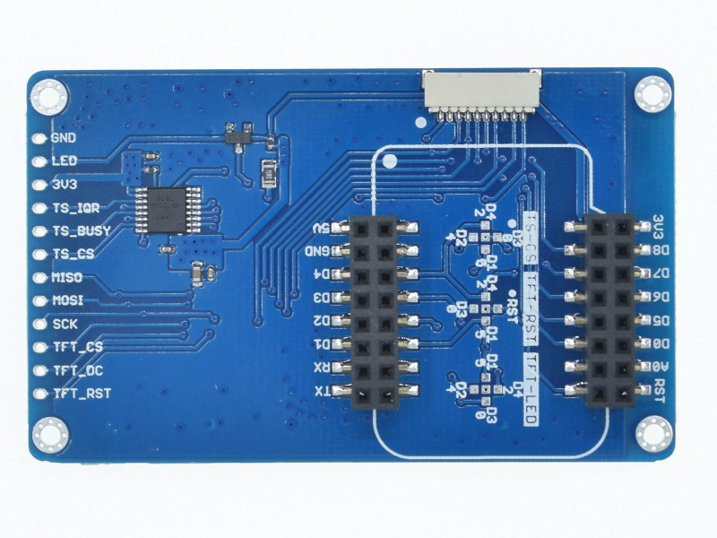 This Lolin TFT has a 2.4" touchscreen with XPT2046 resistive touch controller. There are 3 ways to connect an ESP32: