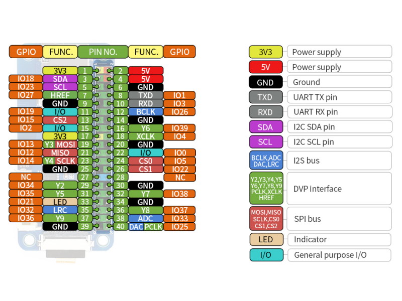 | 24 | Chip select control pin | GPIO5 | TFT_CS | LCD_CS |