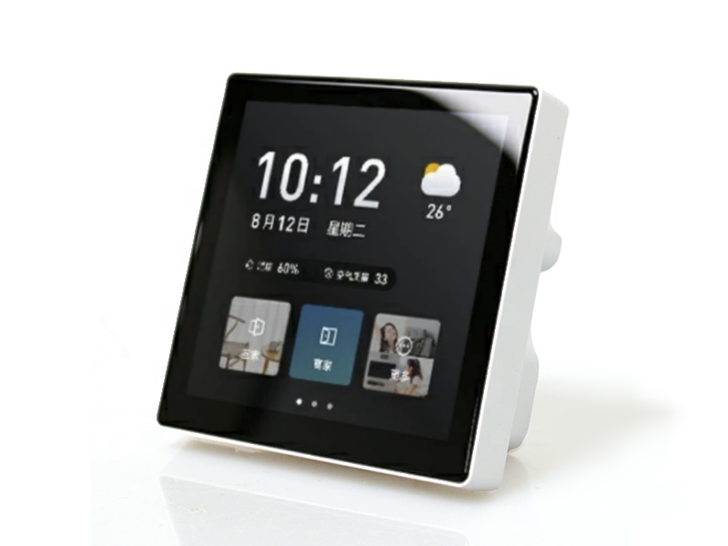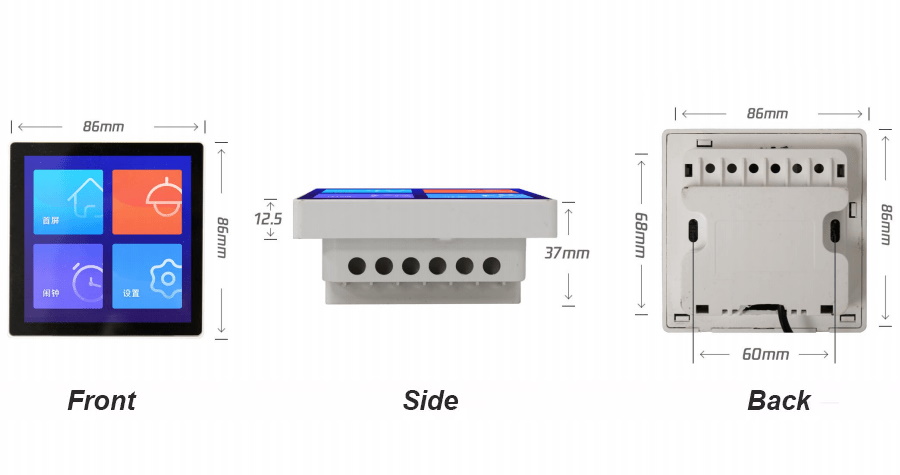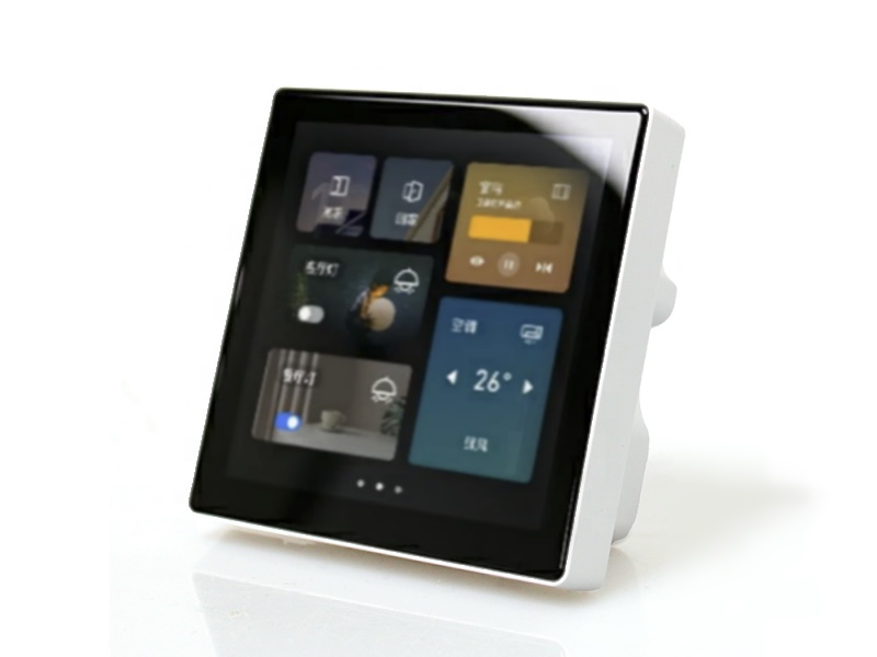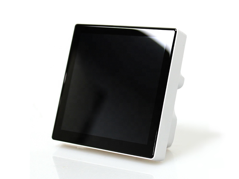 The Wireless-Tag WT-86-32-3ZW1 is a 86x86mm touchscreen with 4 relays that can be mounted in a standard 86x86mm wall-box. It is currently only available from Alibaba for around US $40 excluding shipping.
