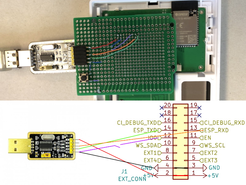 All pins are conveniently broken out on the 2mm pitch female header. Make sure the USB port can deliver enough power. It is best to use a powered USB hub since most PC ports can not power the whole device.